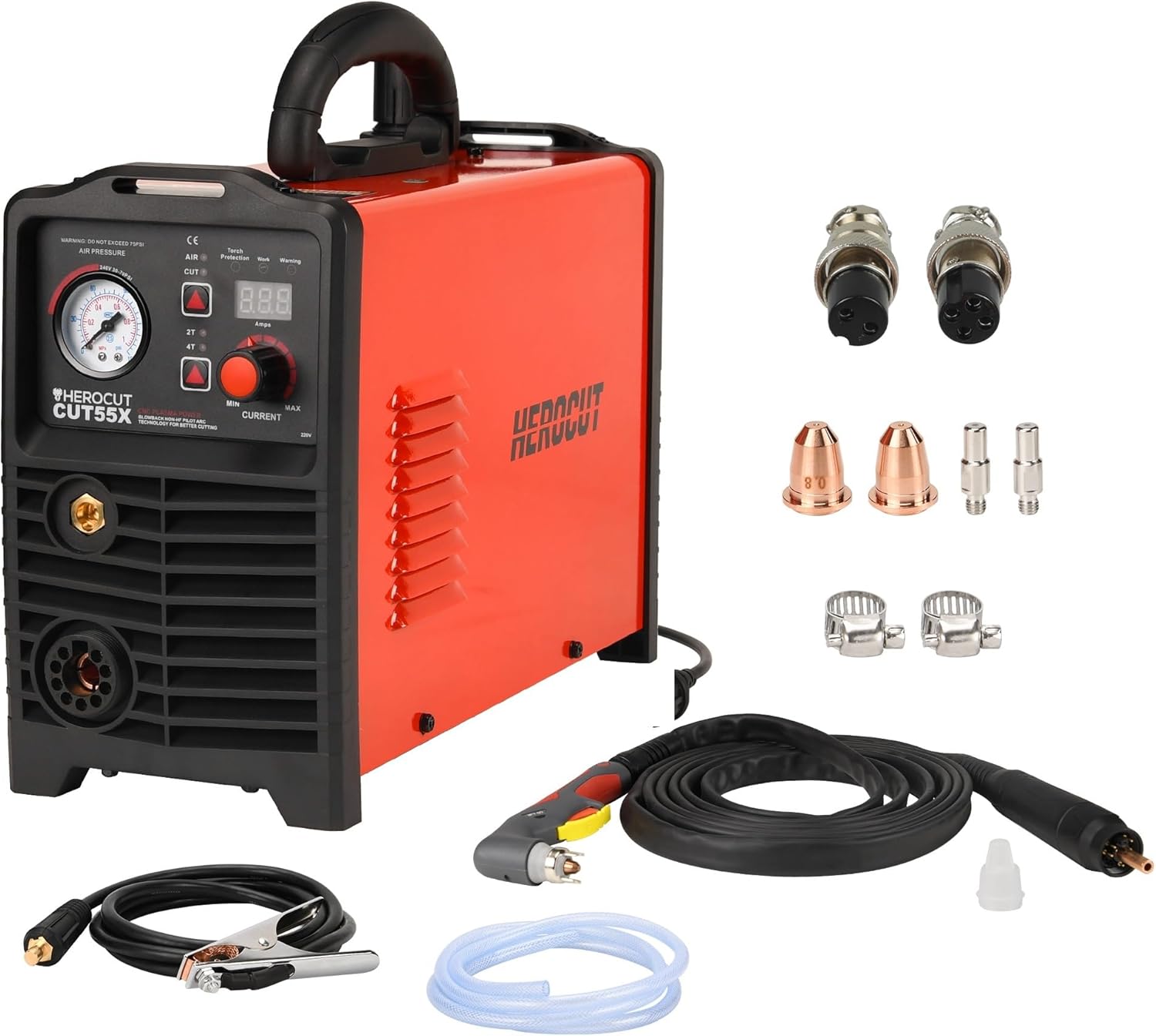 HeroCut CUT55X Plasma Cutter (Compact, 220V)Portable 55A IGBT plasma cutter with non-HF start and a digital...