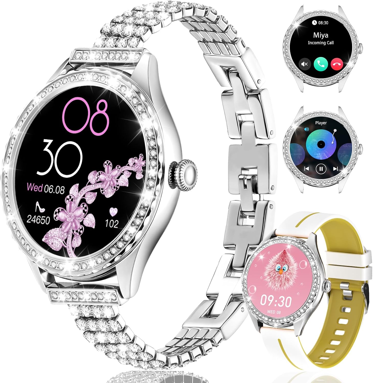 This women’s smartwatch features a 1.32" round touchscreen with customizable faces and includes two interchangeable bands....