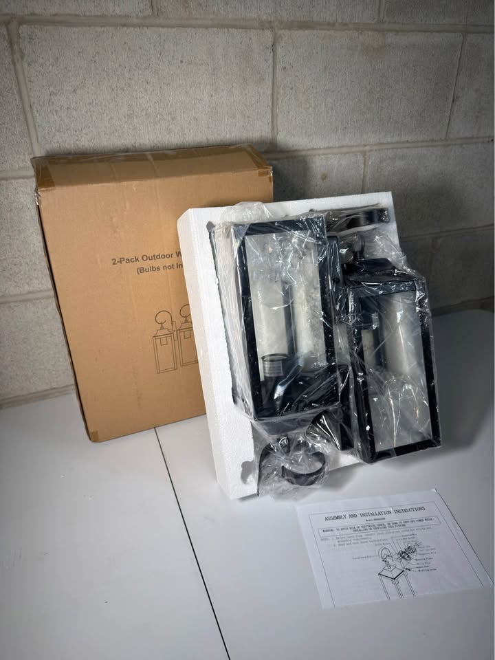 Outdoor Wall Lights 2-Pack – Weatherproof Modern Black Lanterns Illuminate your home beautifully with these durable outdoor wall lights, built from weather-resistant metal to withstand rain, snow, and sun without rusting or fading. Measuring 15.3”H × 4.7”W × 4.7”L, they feature clear glass panels for maximum brightness and timeless charm.