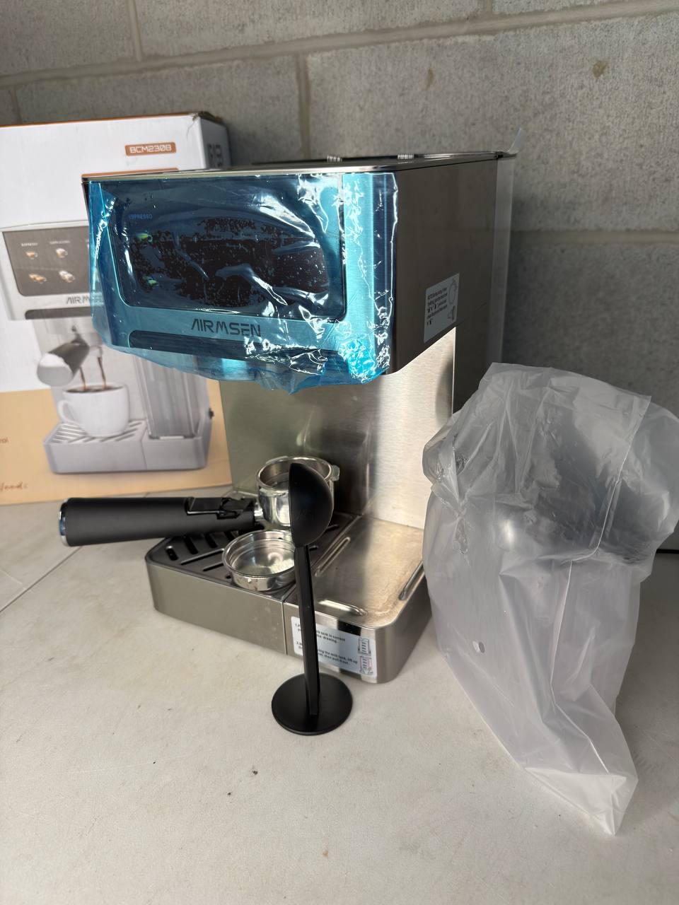 This used – like new AIRMSEN 20 Bar espresso and cappuccino machine brings café‑style coffee into your kitchen with professional‑inspired features and intuitive operation. Powered by a 20 bar Italian pressure pump and dual boiler heating system, it brews rich espresso and produces smooth, silky milk foam for cappuccinos and lattes quickly and consistently. The built‑in automatic milk frother and LED touch controls streamline the brewing process, making it easy to enjoy your favorite drinks at home without fuss.
