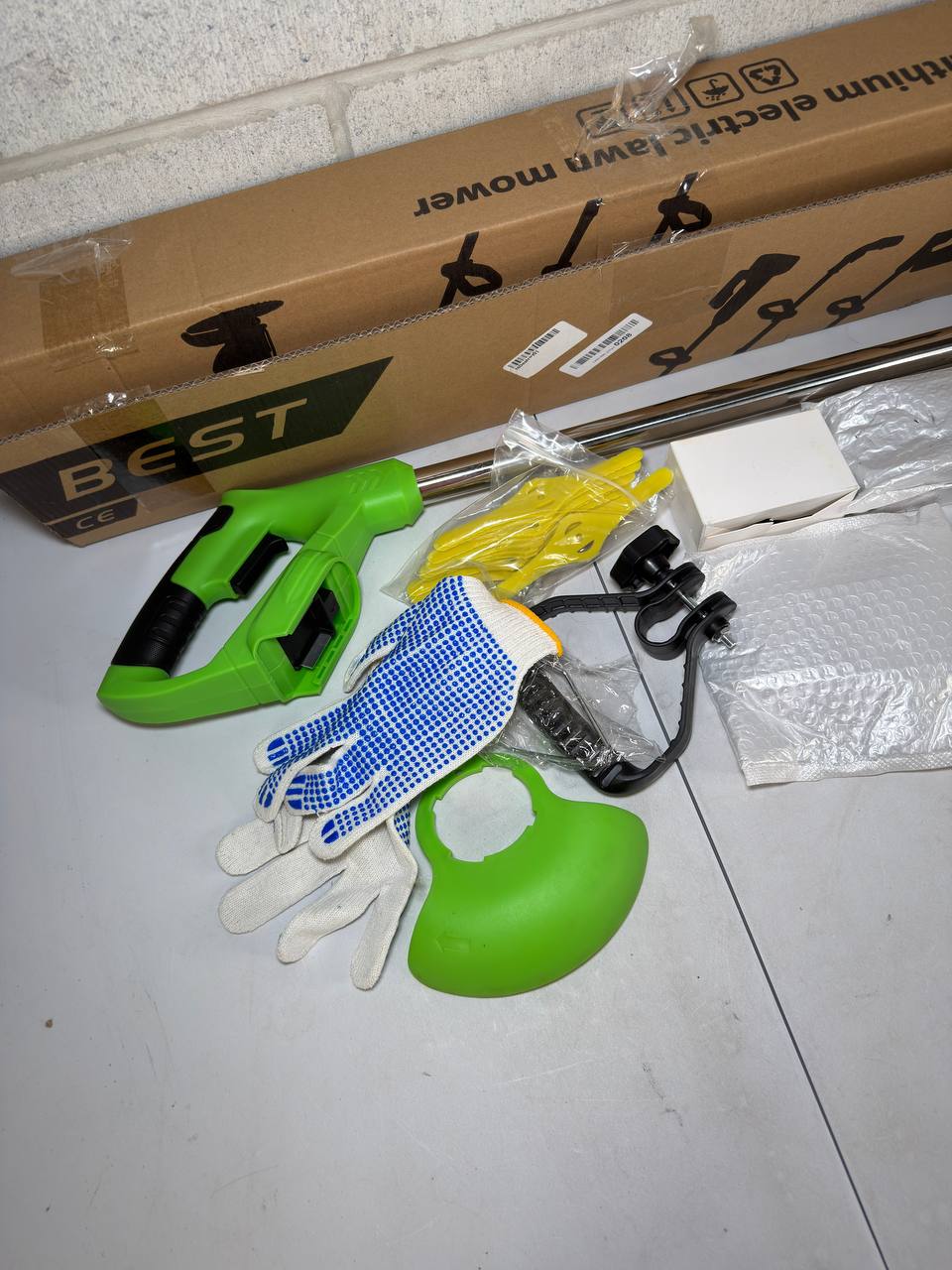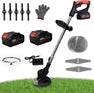 BBTEQEKN Cordless Weed Trimmer – Black, 100×35 cm, 6-inch cutting width, battery-powered. Features 3-in-1 interchangeable blades for grass, weeds, and branches, dual 12.0Ah batteries, quiet operation, adjustable handle, and safety dual-switch design for effortless garden maintenance