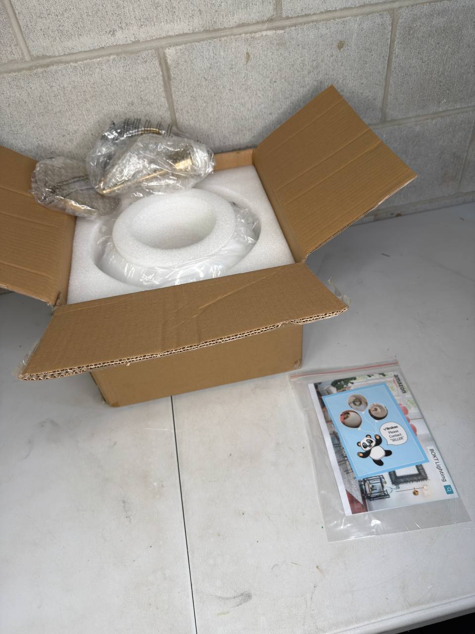 BOKT modern pendant light features a gold metal finish with a white glass dome shade for soft, even lighting. Measures 26.9 × 26.9 × 17 cm and includes an adjustable hanging cord for perfect placement over tables or islands.