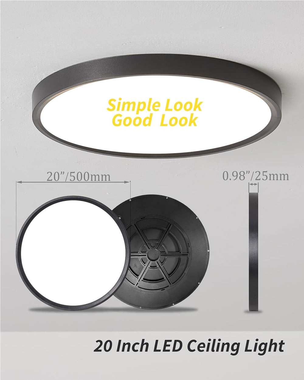 Modern, energy-efficient 40W LED ceiling light providing 4350 lumens. Features three color temperatures (3000K/4000K/6000K) and uniform, flicker-free illumination. Slim, durable design fits low ceilings and works in bedrooms, kitchens, bathrooms, and living areas. Easy to install with long-lasting LEDs rated up to 25,000 hours.