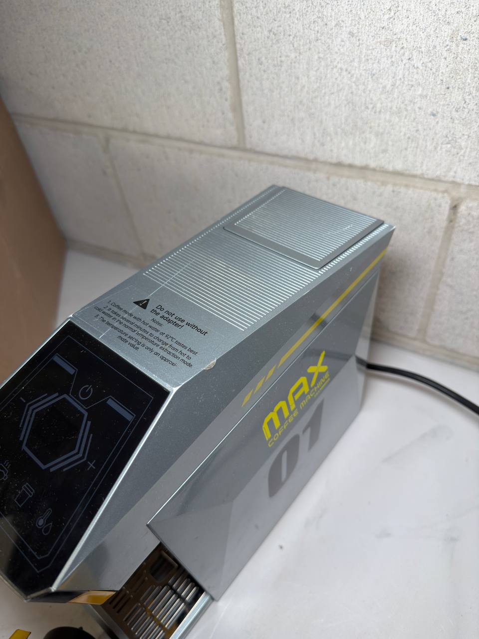 HAILASRE 4-in-1 Espresso Machine – Grey, 26.4×12×30.4 cm, 800ml capacity. Compatible with K-Cup, Nespresso, Dolce Gusto capsules, and ground coffee. Features 19Bar extraction, adjustable temperature, customizable brew sizes, and auto shut-off for espresso, cappuccino, americano, and iced coffee.