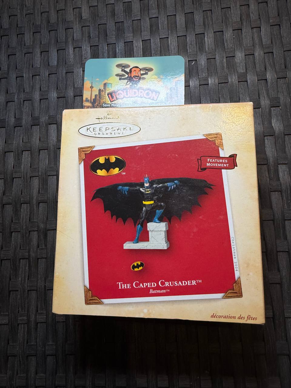 Hallmark Batman Keepsake ornament with a pull-string Bat-Signal feature that reveals Batman in action. Measures 4 inches tall, making it a bold and eye-catching addition to any holiday display.