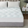 Queen-size mattress pad with bamboo top, memory foam layer, and down-alternative filling for even weight distribution and pressure relief. Features deep elastic pockets for secure fit, breathable and cooling gel-infused surface, and ultra-soft, durable polyester fabric. Machine washable for easy care.