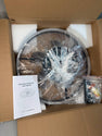 50 × 50 × 14.5 cm enclosed ceiling fan/light for low ceilings. 3300 lm LED, stepless 3000–6500K, 10–100% dimming with memory. 5-blade fan, 6 speeds, reversible pure-copper motor (summer/winter airflow). Remote + Bluetooth app, 1/2-hour sleep timer. 110V AC, indoor bathroom/living areas.
