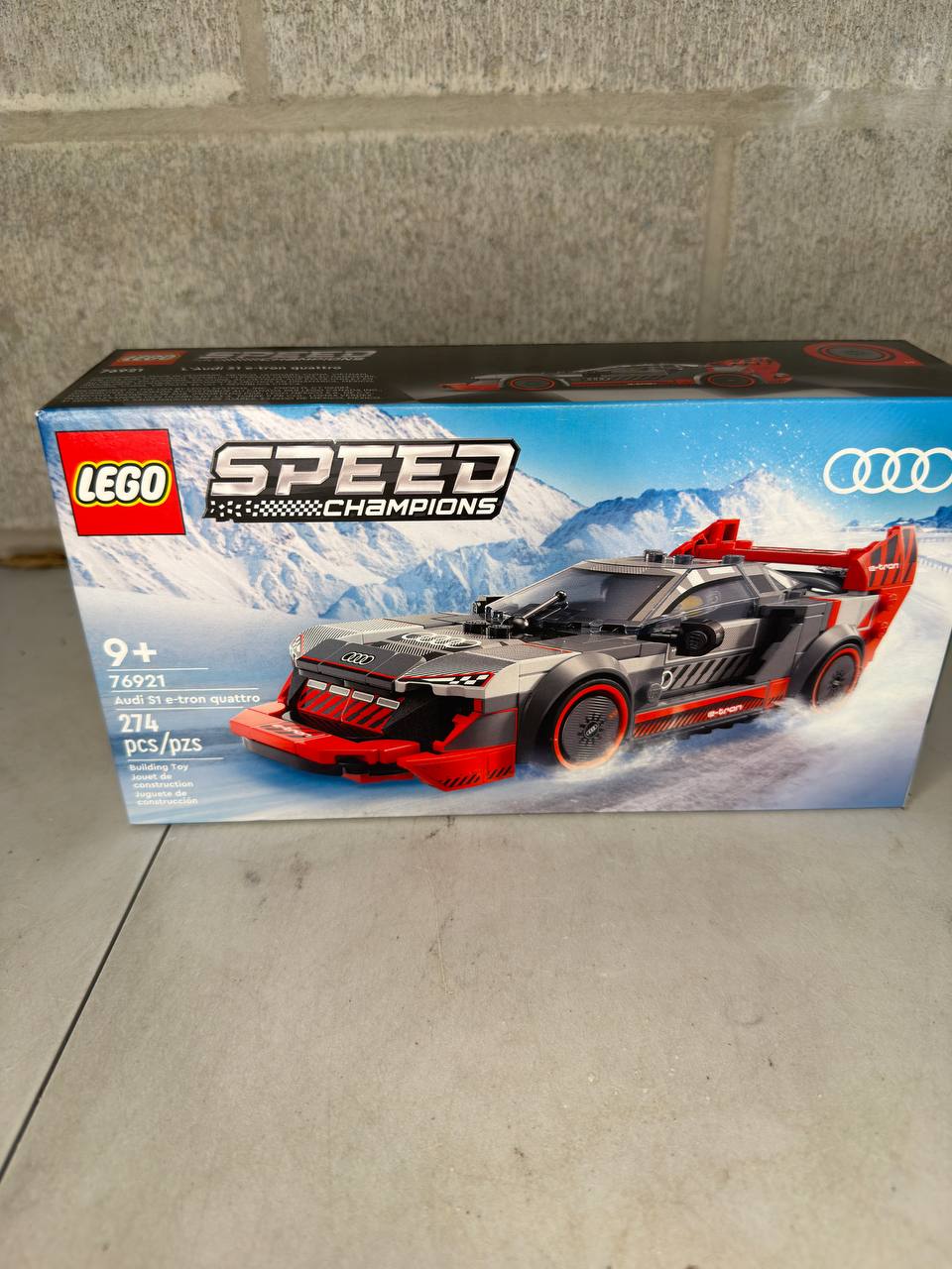The LEGO Speed Champions Audi S1 e-tron Quattro (76921) lets builders recreate a sleek electric rally race car with authentic design details. This brand-new in box (BNIB) set includes a driver minifigure and a detailed Audi race car model, making it perfect for racing play, collecting, or display.