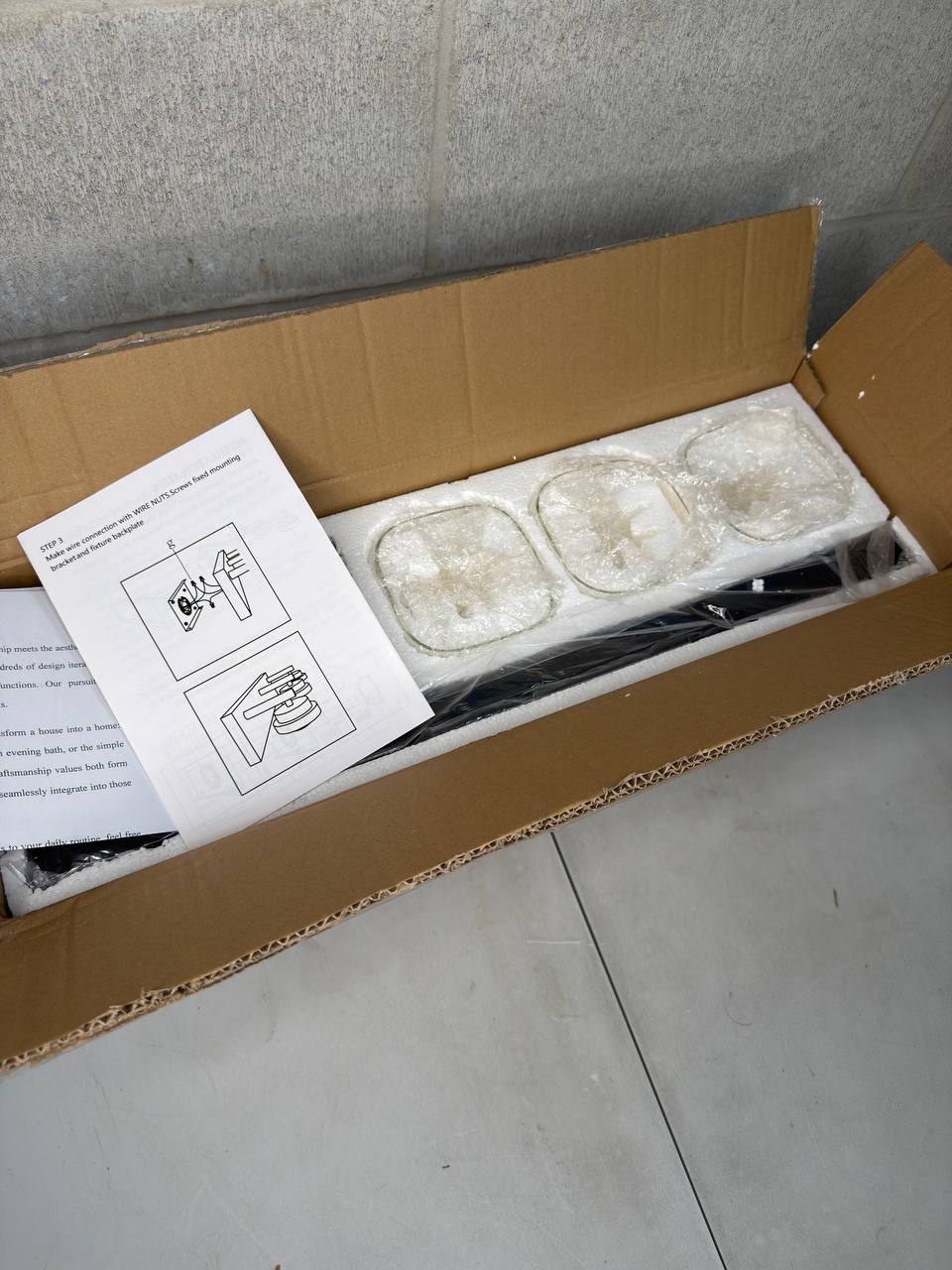 • Included: Vanity light fixture, mounting hardware, and original packaging (see photos)