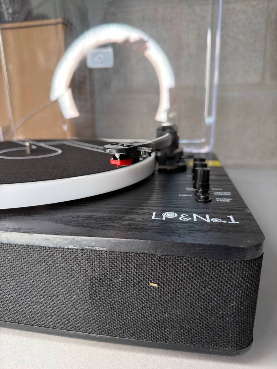 This open box LP&No.1 vinyl record player delivers classic turntable performance with modern connectivity — including USB playback & recording, wireless Bluetooth input/output, and built-in stereo speakers. It supports 33/45/78 RPM belt-drive playback and features pitch control, auto stop, and intuitive LED controls. ‼️Please note: there is a crack on the plastic dust cover — cosmetic only; it does not affect performance‼️ This unit is fully functional and great for listening to your favorite records with versatile digital options.