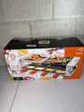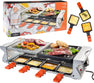 MasterChef Deluxe 8-Person Cheese Raclette Table Grill – Silver Electric tabletop grill with non-stick surface and grilling stone, perfect for cooking meats, veggies, and melting cheese. Includes 8 raclette pans for quick, delicious cheese servings. Ideal for parties, gatherings, or family meals. Dimensions: 48.3W x 20.3H x 11.4D cm.