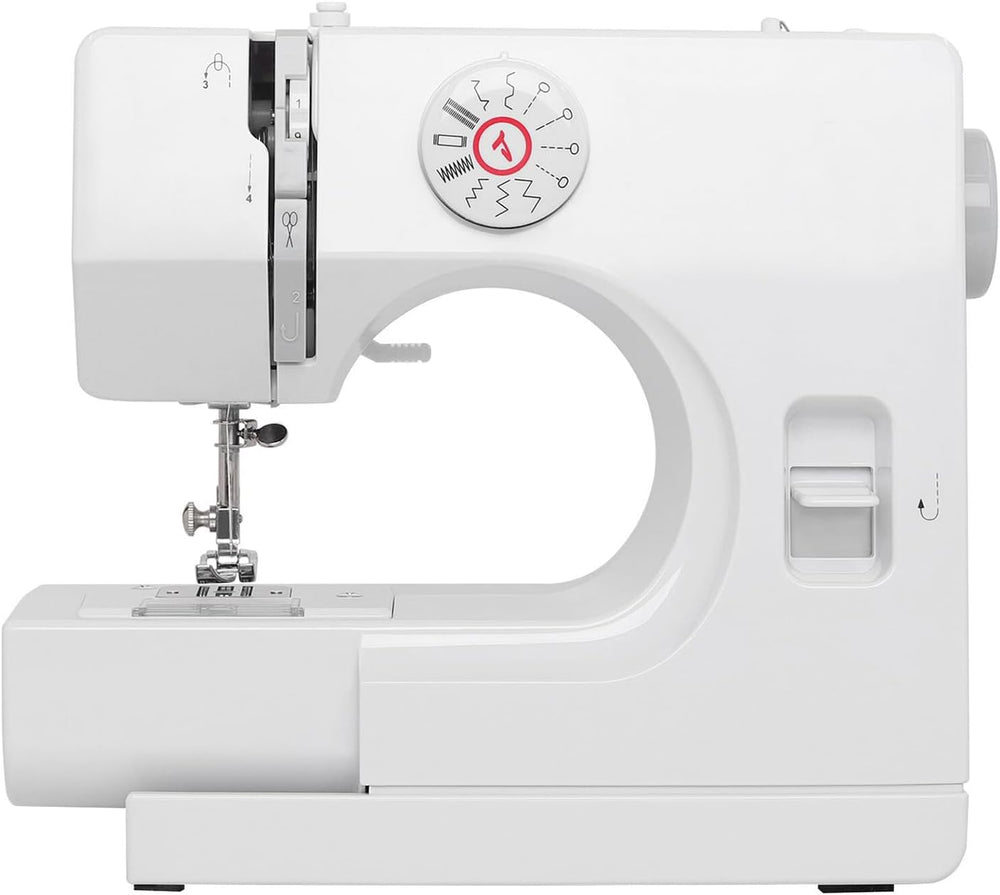Compact electric sewing machine with 12 built-in stitches and reverse function for clean finishing. Handles up to 6 layers of denim. Easy threading, adjustable speed, and foot pedal control make it ideal for beginners, clothing repairs, crafts, and home projects.